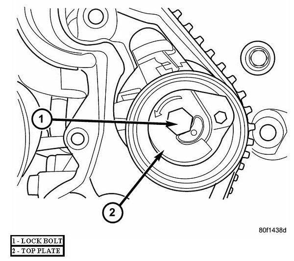 NOTE : Re-positioning the crankshaft to the TDC position must be done only during the clockwise rotation movement. If TDC is missed, rotate a further two revolutions until TDC is achieved. Do not rotate crankshaft counterclockwise as this will make verification of proper tension-er setting impossible.