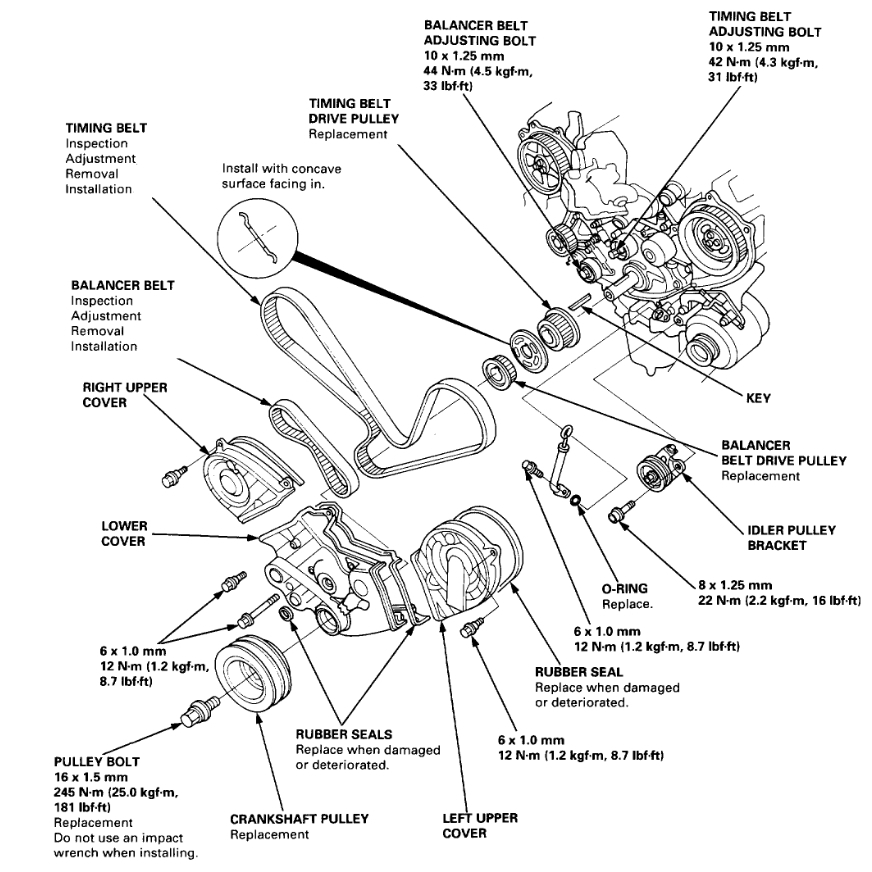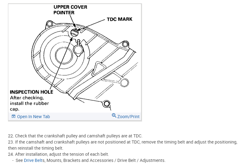I have attached the timing belt procedure below including all the markings and torque specifications.