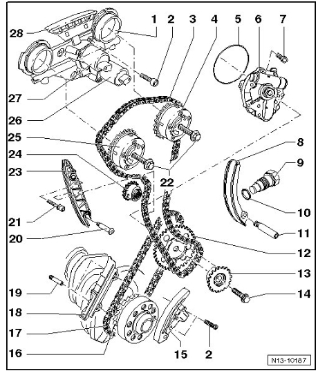 When they replaced the chain, were any other components replaced at the same time? I attached an exploded view of the timing chain and components. Take a look.