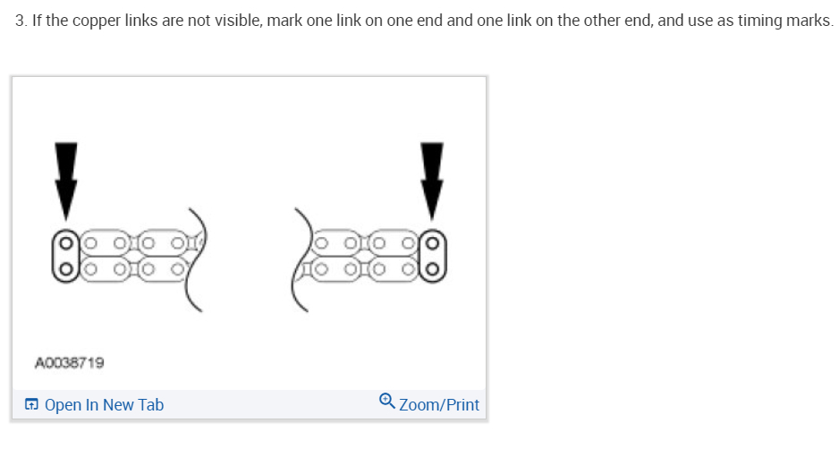 If the copper links are not visible, mark two links on one end and one link on the other end, and use as timing marks.