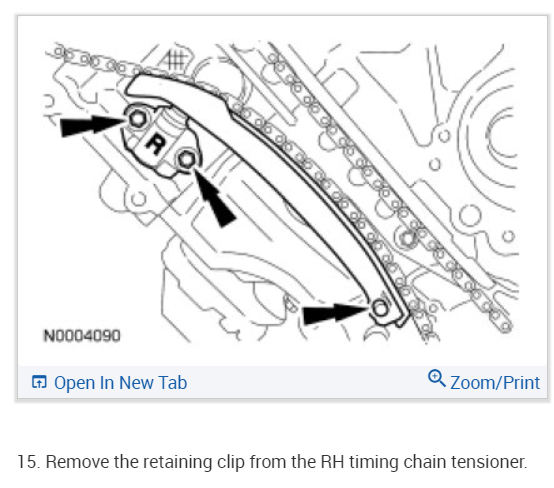 Remove the retaining clip from the RH timing chain tensioner.