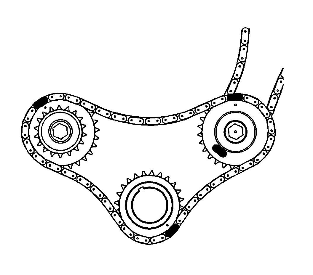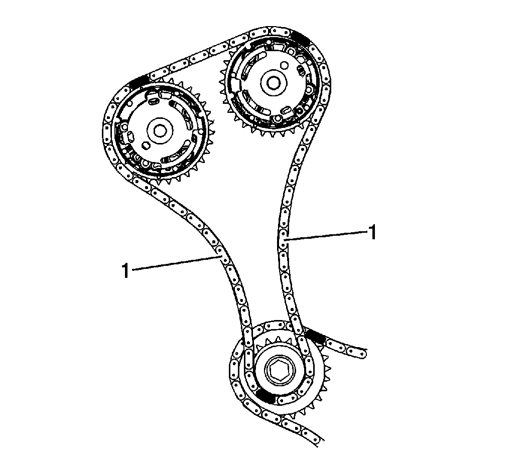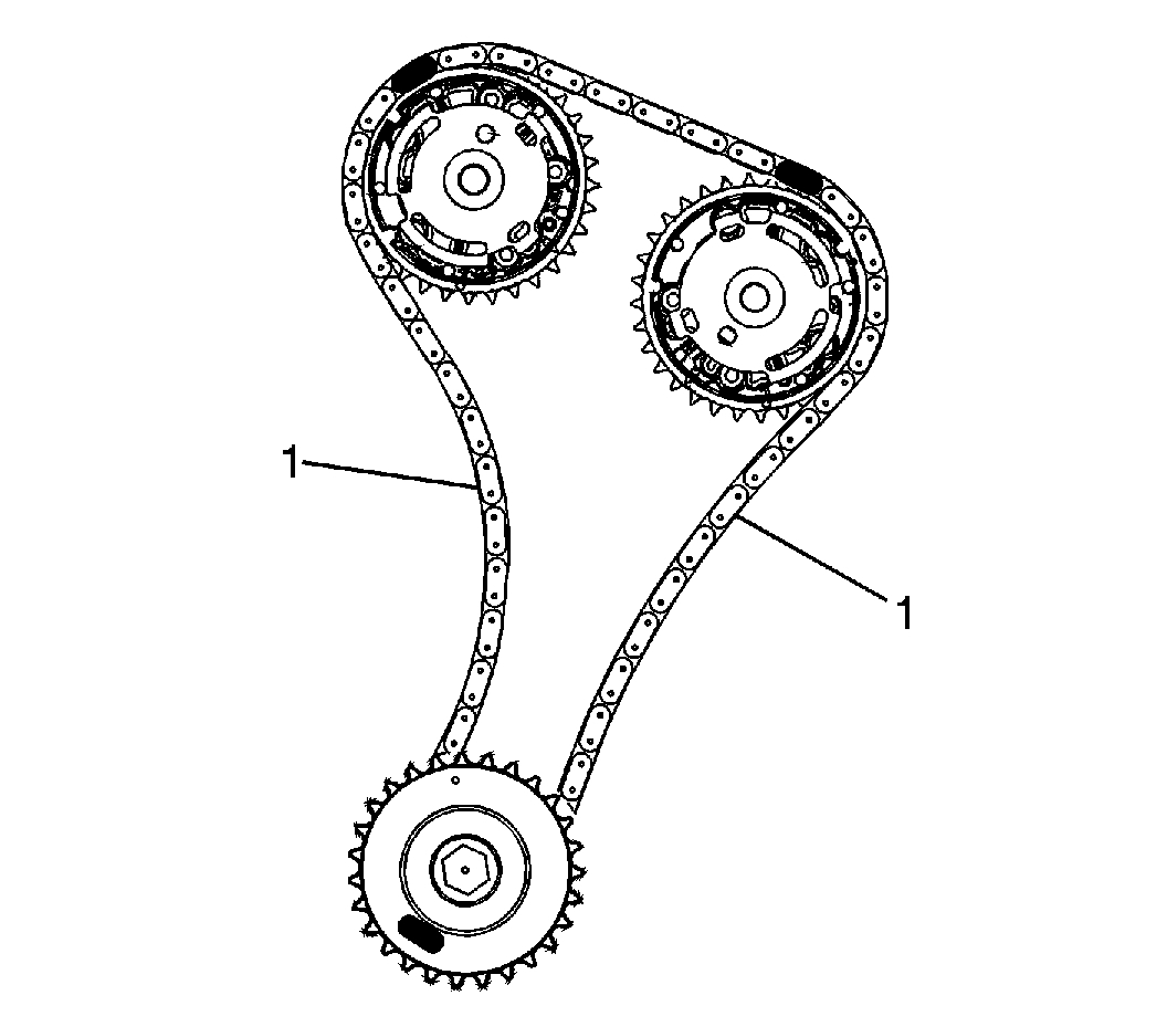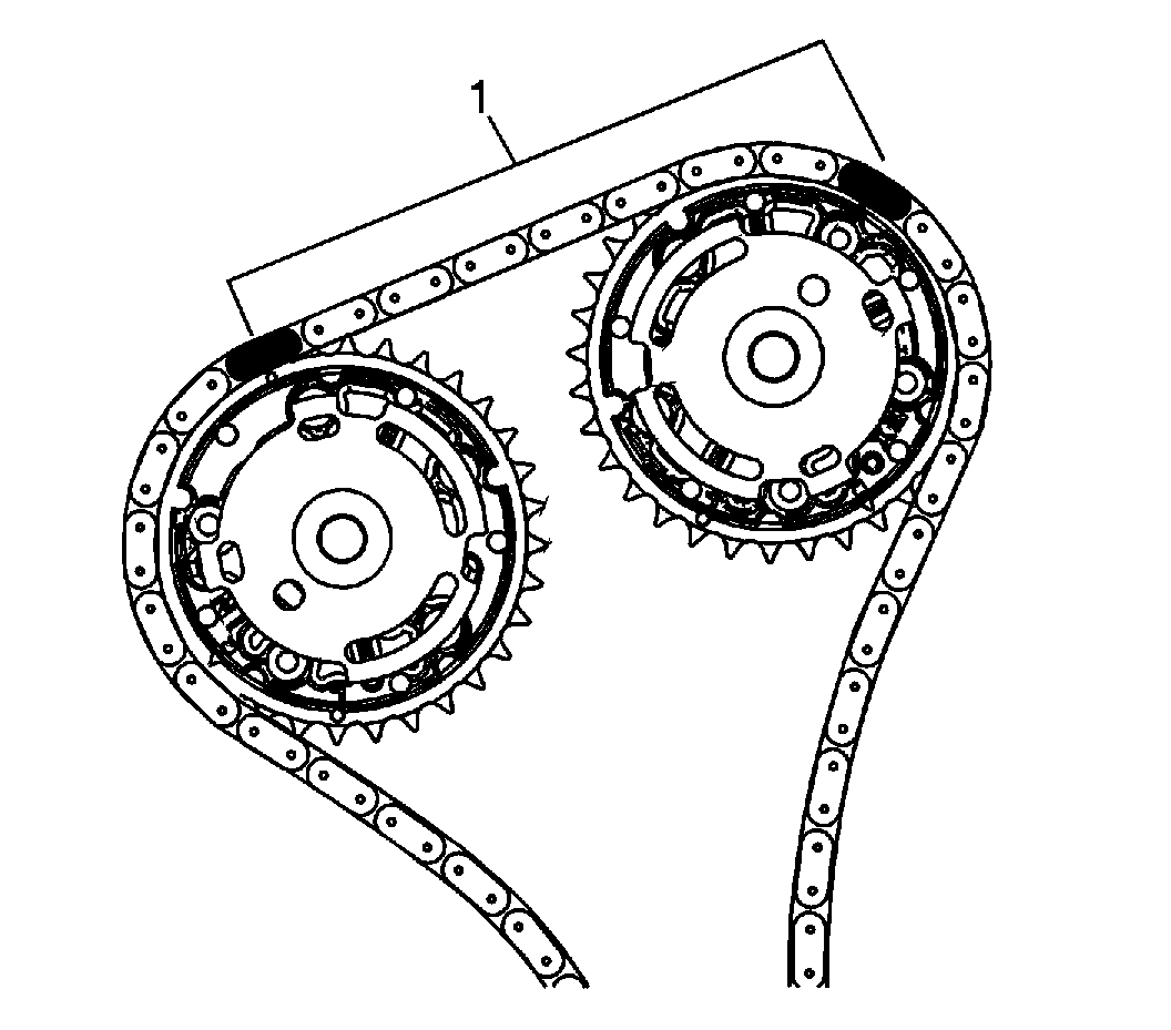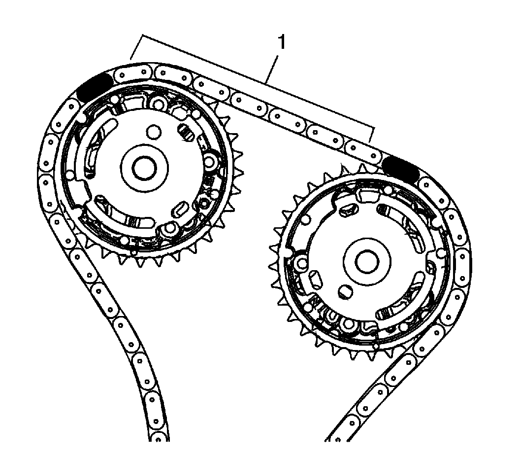 8. There will be 18 links (1) between the right camshaft intermediate drive chain idler timing camshaft drive chain link and each right camshaft position actuator sprocket timing camshaft drive chain link.