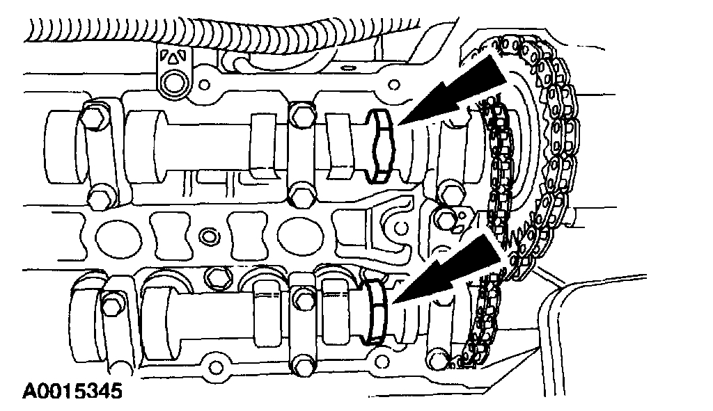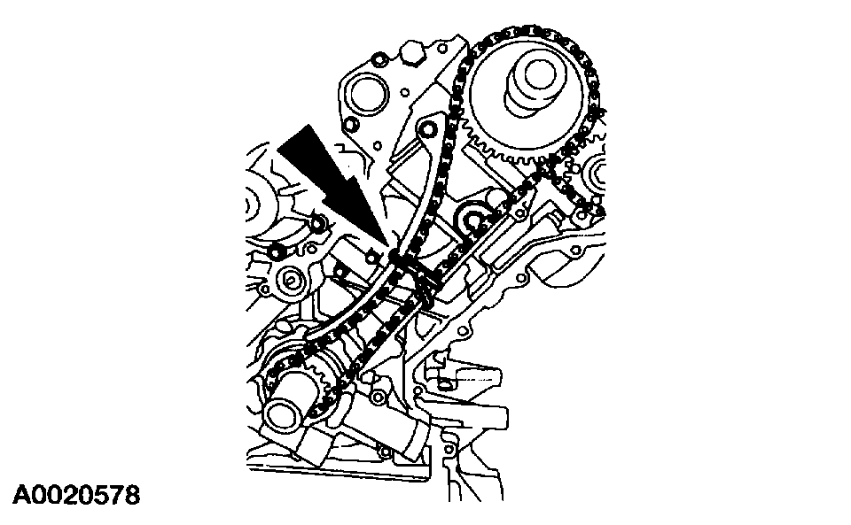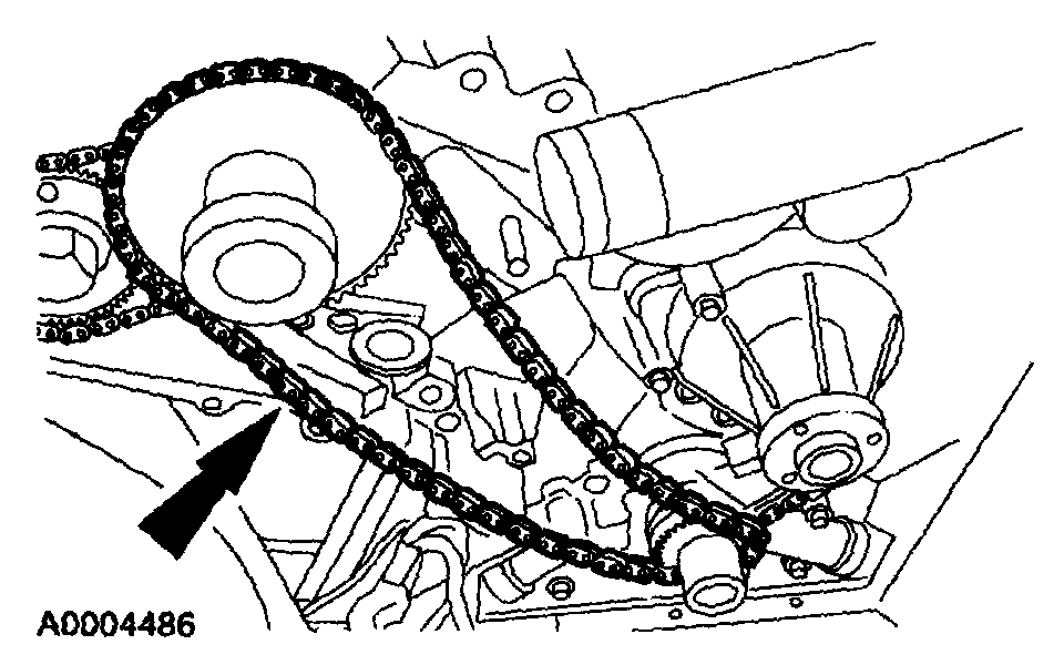 - Position the timing chain over the LH intake camshaft sprocket.