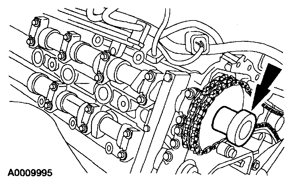 NOTE: The camshaft holding tool should still be installed on the LH cylinder head.