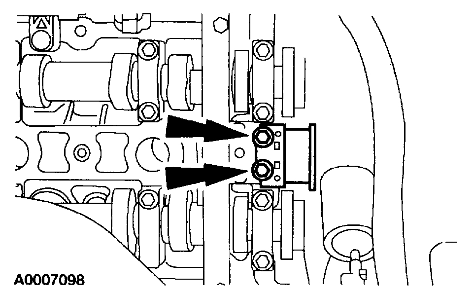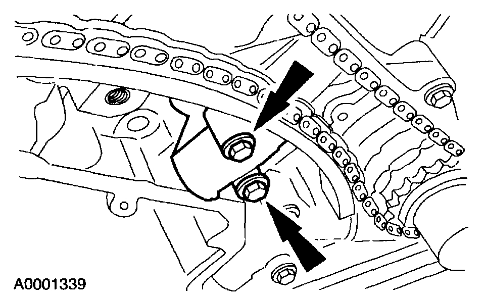 5. Remove the secondary timing chain tensioner bolts.