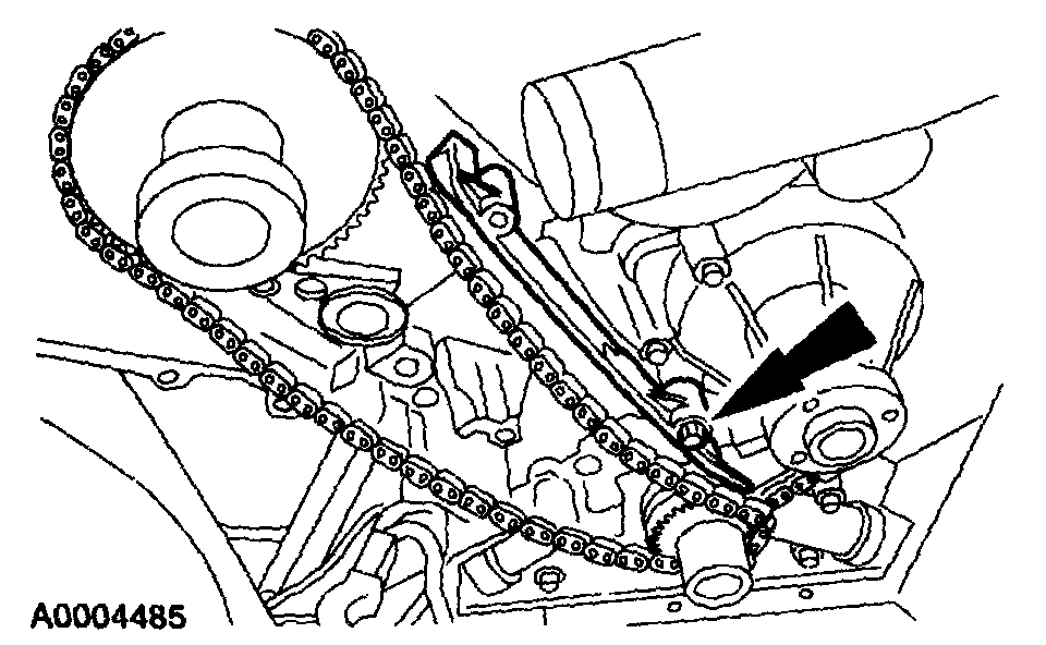 4. Install the LH timing chain tensioner arm.