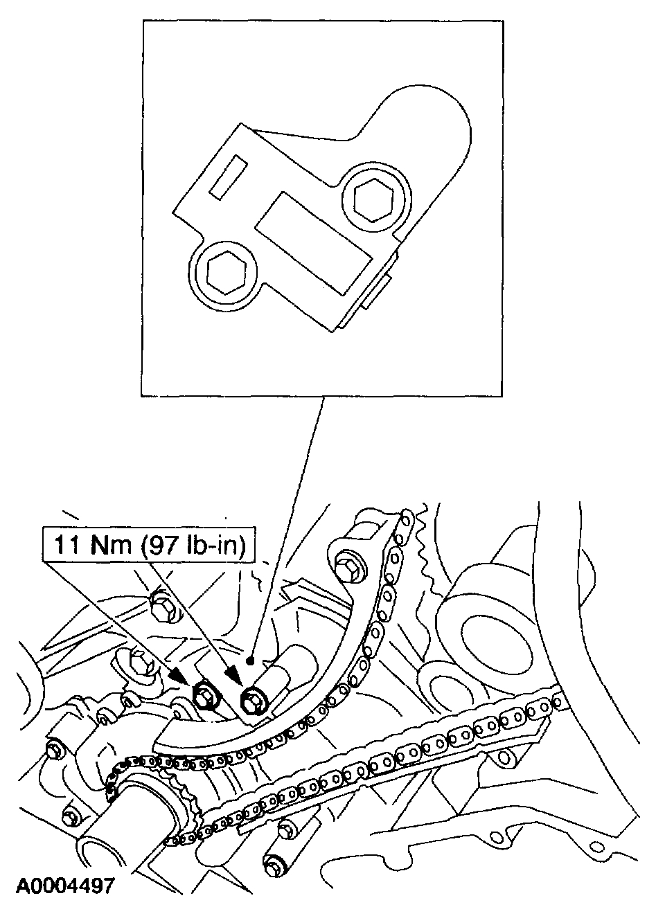 12. Install the RH timing chain guide.
