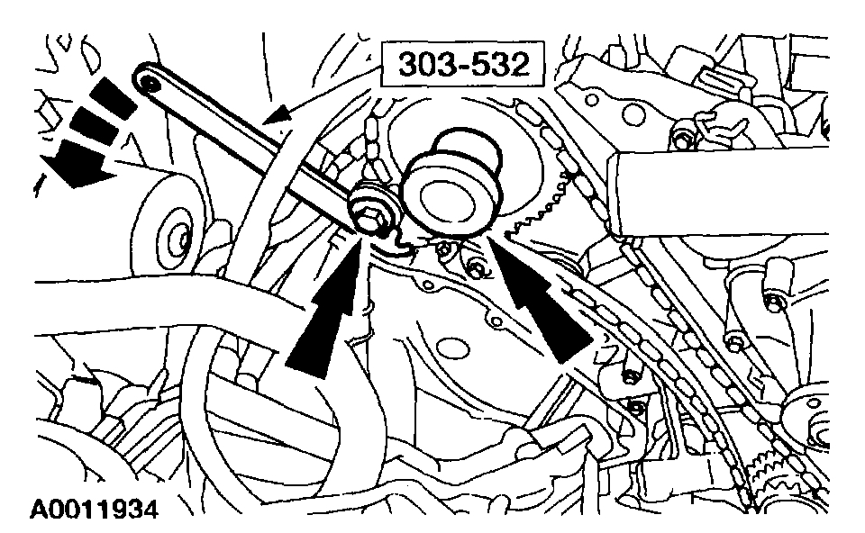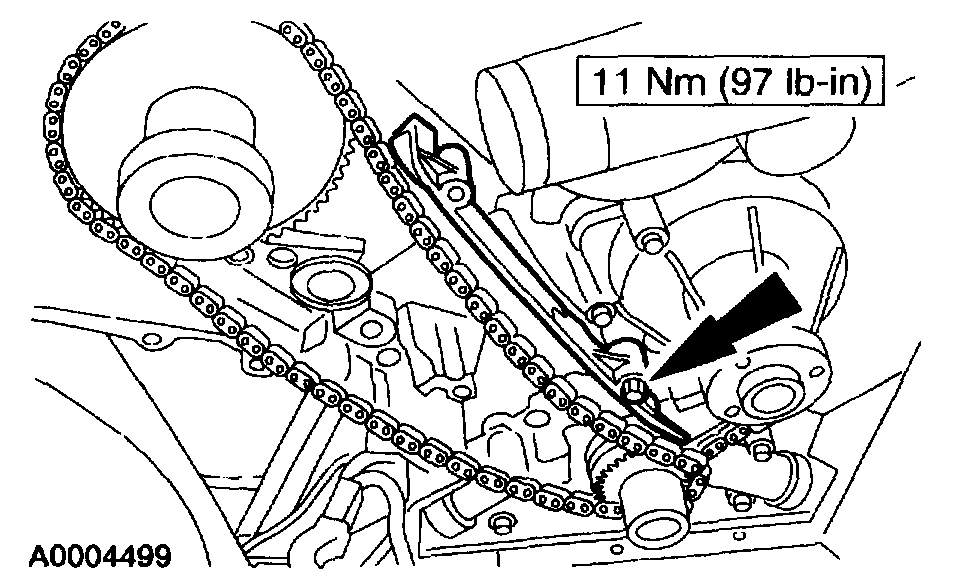 13. Install the RH timing chain tensioner arm.