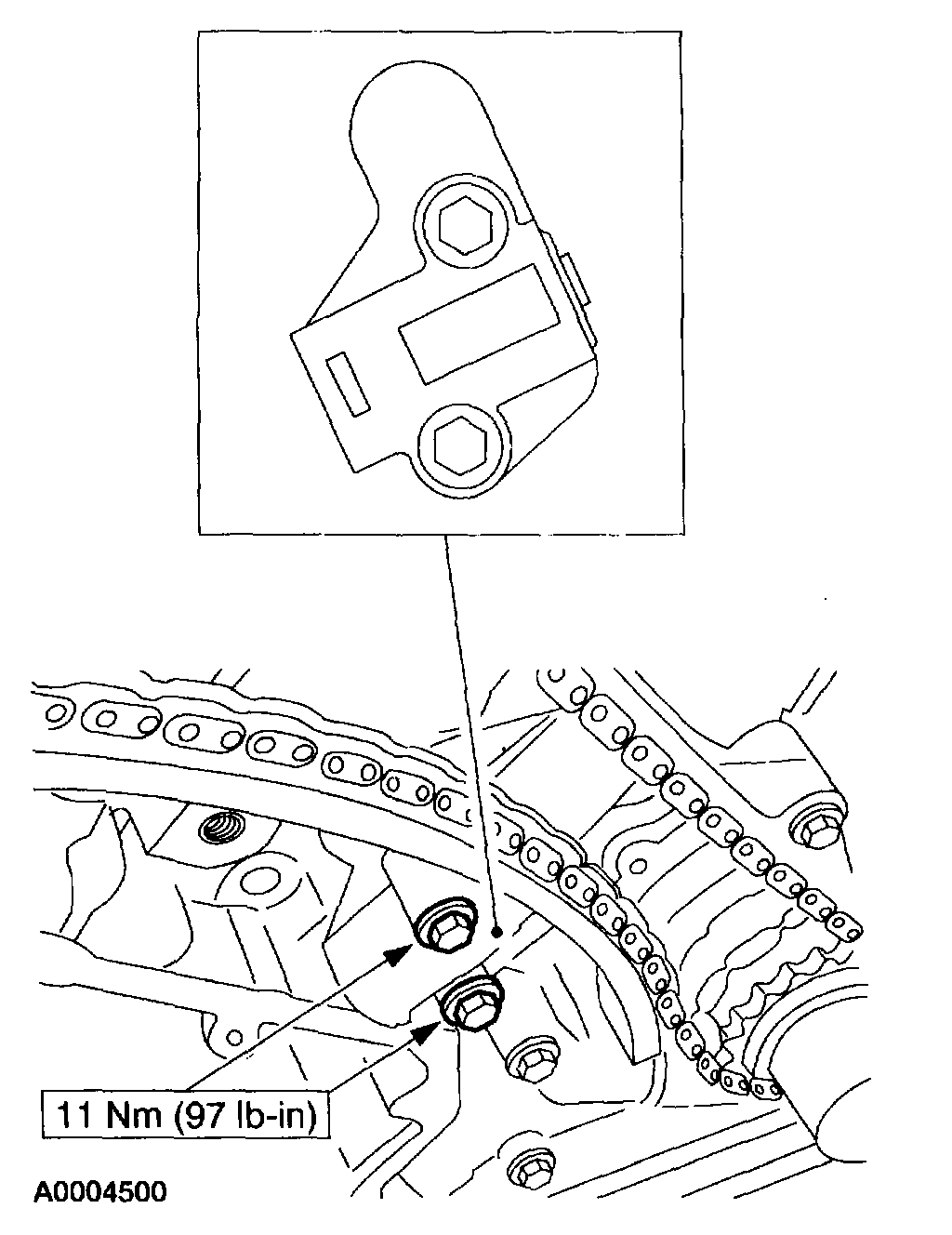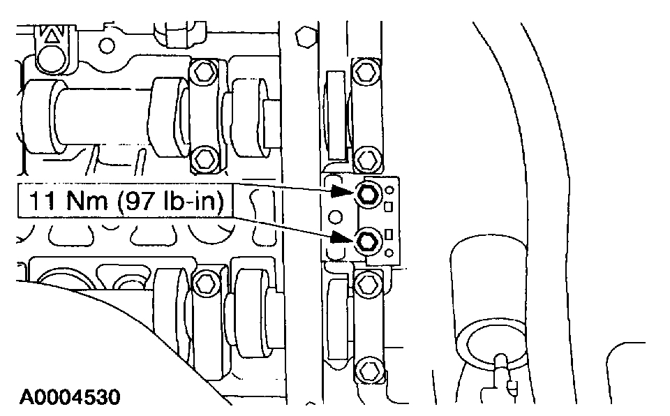 - Install the RH timing chain tensioner and blanking plate.