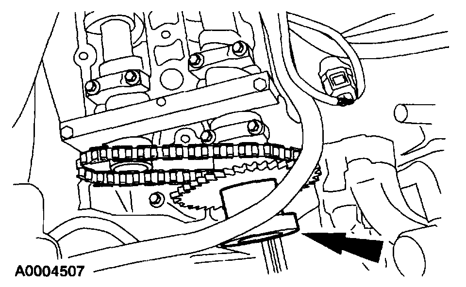 - Position the timing chain over the RH intake camshaft sprocket.