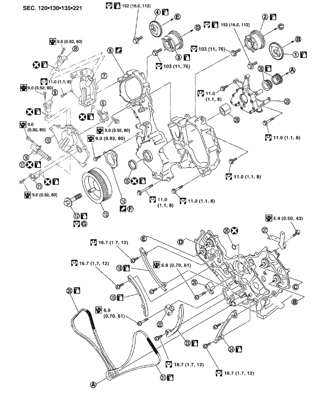This could be problematic, if the timing is off it could bend the intake and exhaust valve when the engine was cranked over. No way to tell now we must retime the engine. here are the marks so you can see what's going on. Check out the diagrams (below). Please let us know if you need anything else to get the problem fixed.
