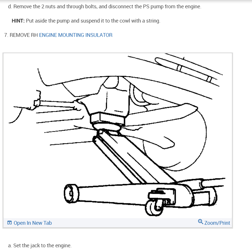 Slightly jack up the engine on the right side to remove the RH engine mount. Inspect the mount and replace if necessary.