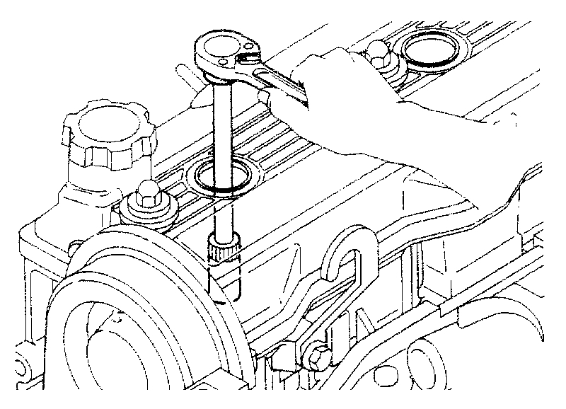 (a)Using a plug wrench (16 mm) install the spark plugs.