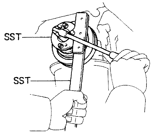 (C)Using SST 09213-14010 and 09330-00021, install the pulley bolt.