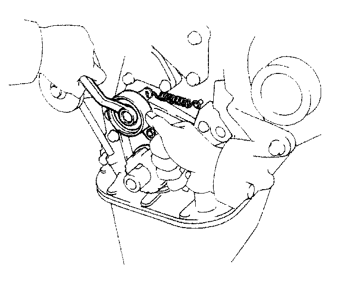 (d)Tighten the timing belt idler pulley mounting bolt.