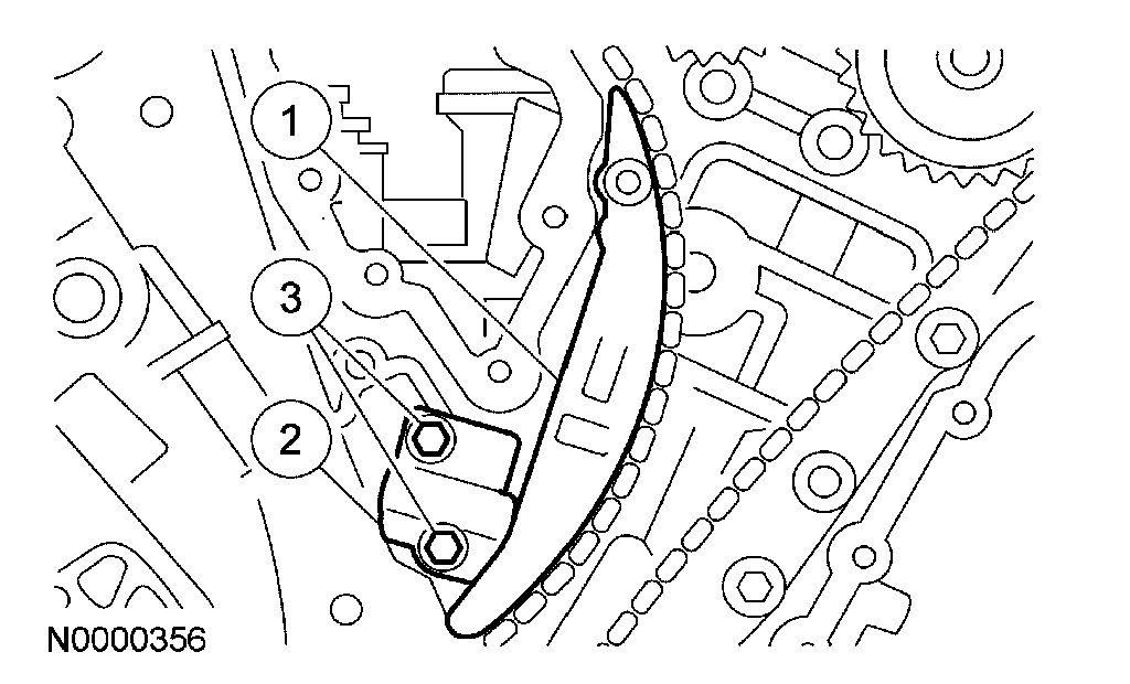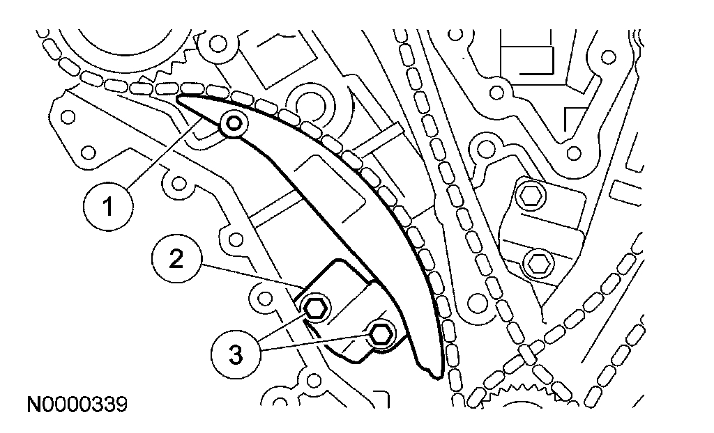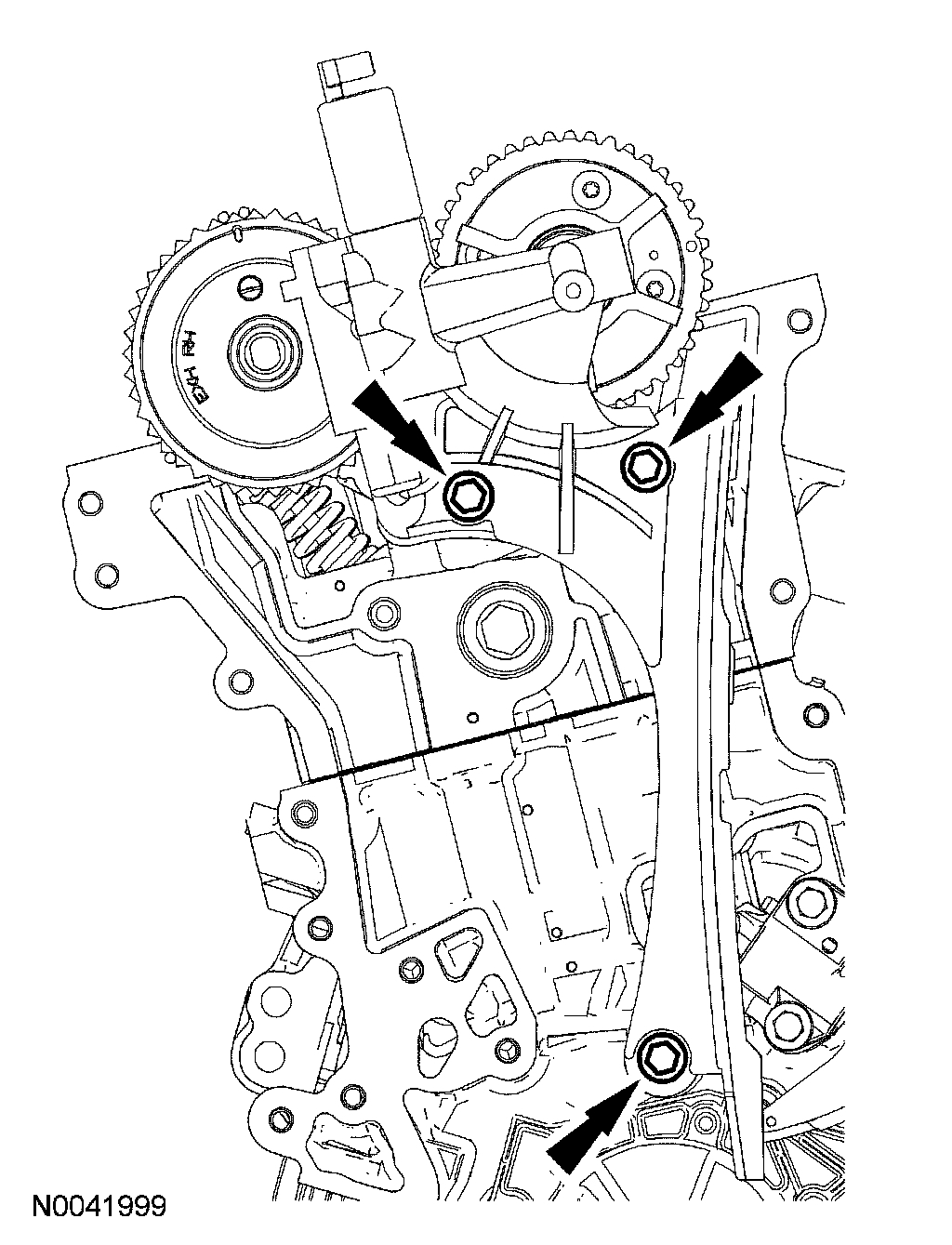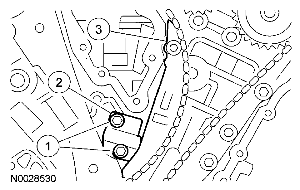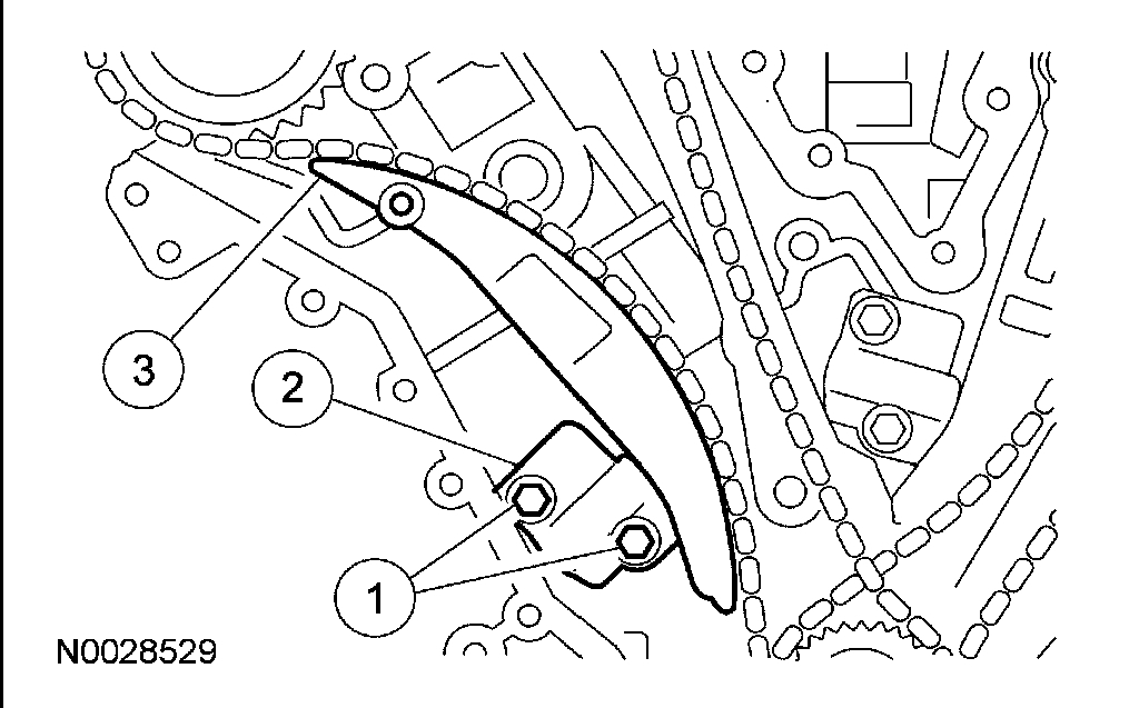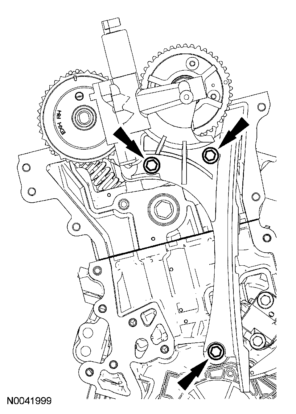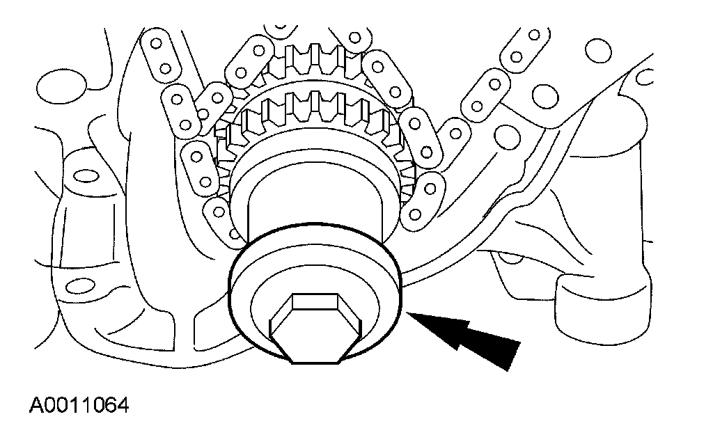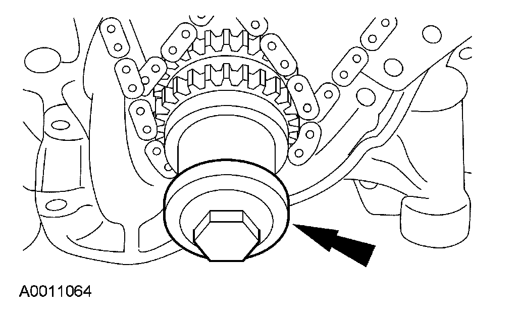10. Install the LH timing chain tensioner arm and the LH timing chain tensioner.