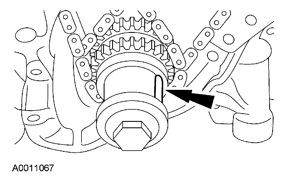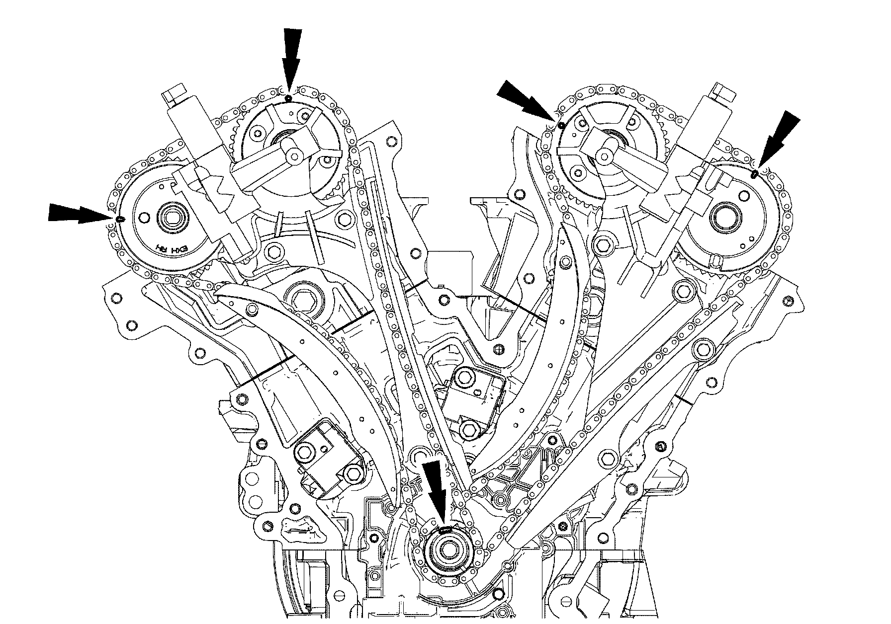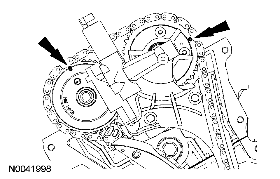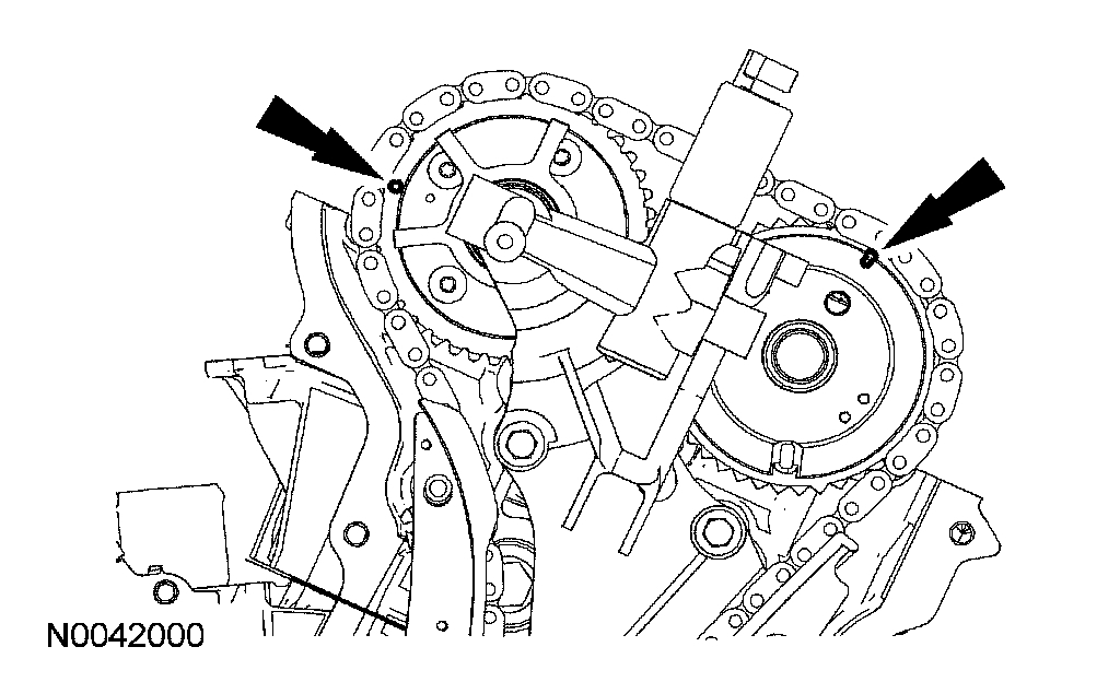 6. If timing marks in the timing chains are not evident, use a permanent-type marker to mark the crankshaft and camshaft timing marks on the LH and RH timing chains.