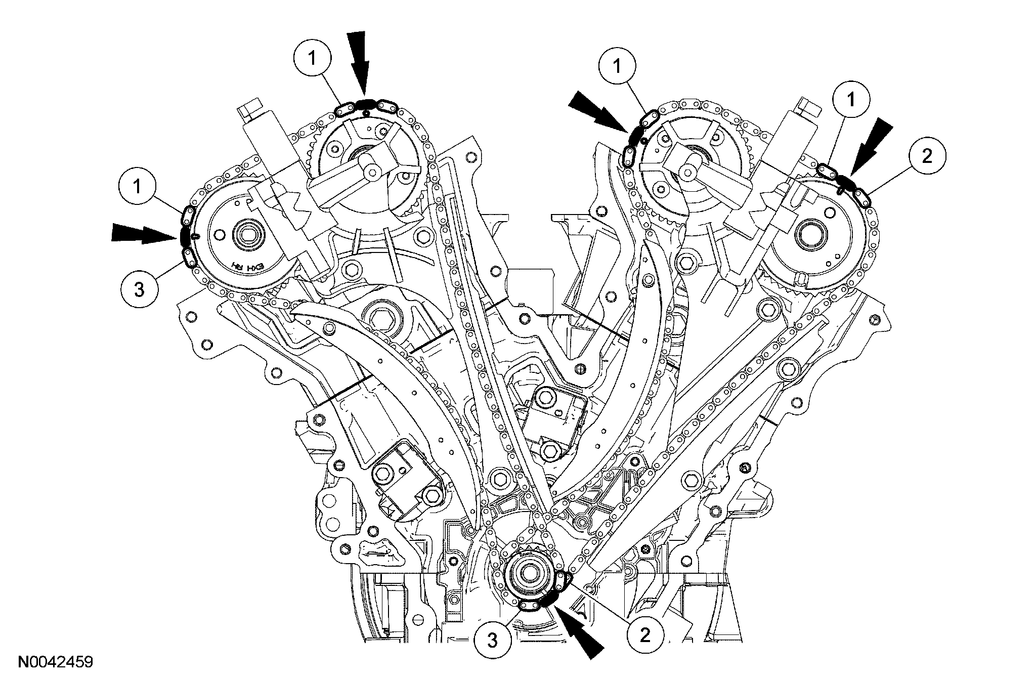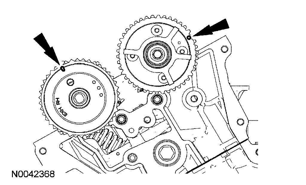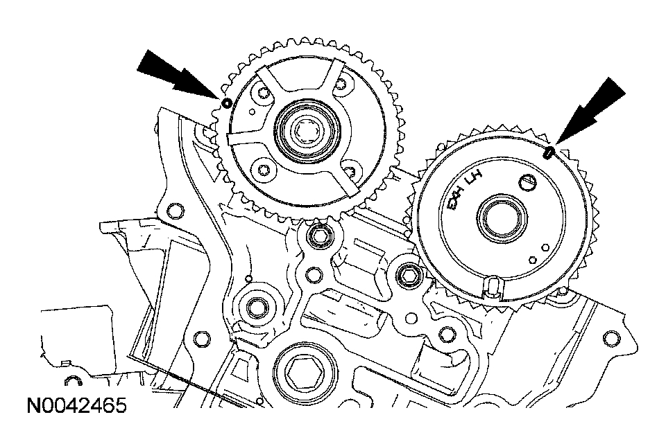 12. Verify that the RH camshafts are correctly positioned.