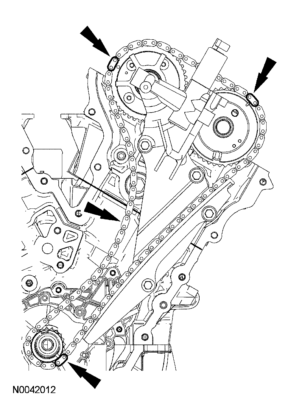 CAUTION: Failure to verify correct timing drive component alignment will result in severe engine damage.