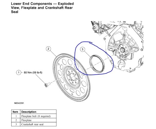 As far as the main seals, there is a lot involved. The rear main requires the engine and transmission to be separated and the torque converter and flywheel to be removed. If you look at pic 34, I attached an exploded view of the rear main seal. I circled it for you.