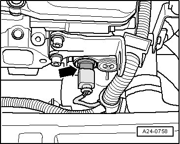 - Disconnect the hose - 1 - and the vacuum hose - 2 - from the left Secondary Air Injection (AIR) combination valve.