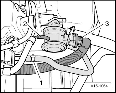 - Disconnect the hose - 3 - and the vacuum hose - 2 - from the Secondary Air Injection (AIR) combination valve.