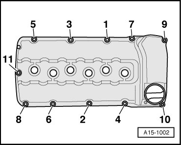 - Loosen cylinder head cover bolts in sequence - 11 to 1 -.
