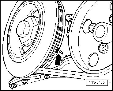 - Set crankshaft to TDC mark by turning crankshaft on vibration damper screw in direction of engine rotation - arrow -.