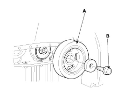 12. Remove the crankshaft pulley bolt(B) and crankshaft pulley(A).