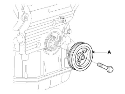 12. Install the flange and crankshaft pulley(A), and then tighten crankshaft pulley bolt(B).