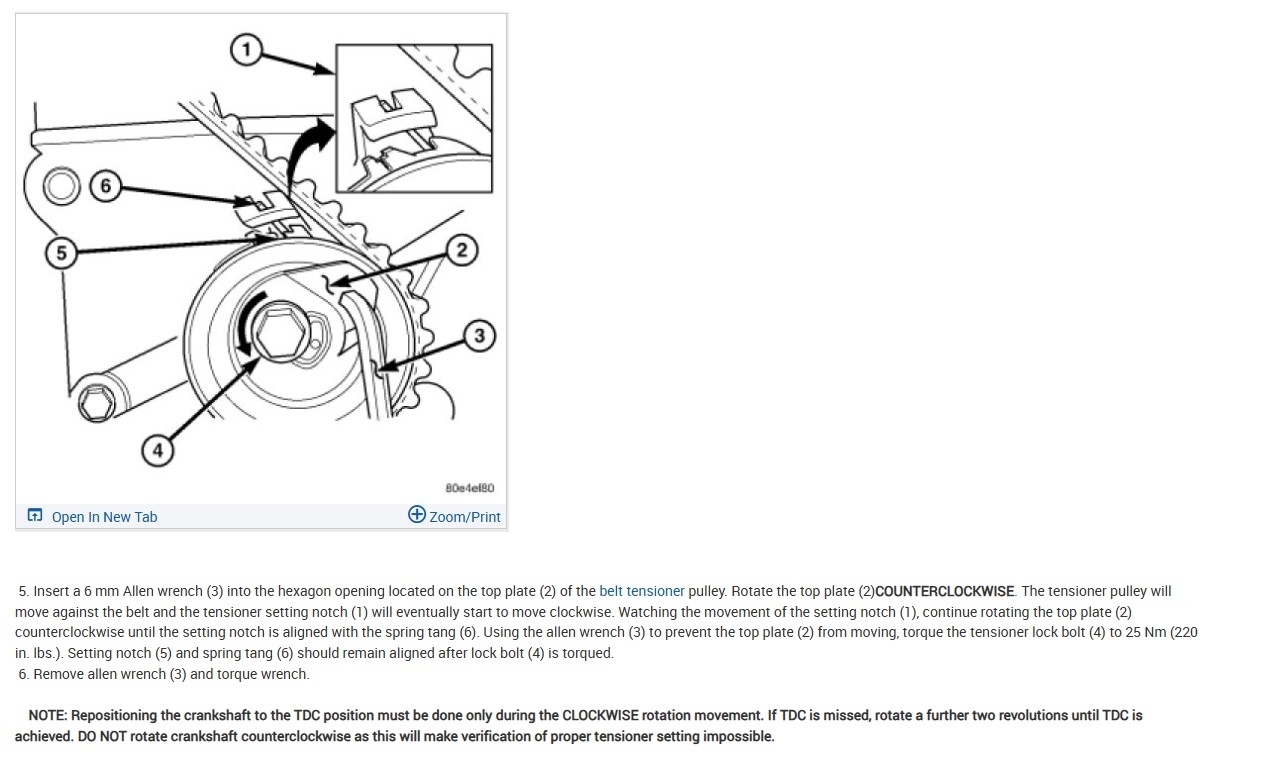 Just notice this first step is lining up the timing marks before the belt is removed the first time, it's getting the #1 cylinder up to top dead center. This next step is after the belt is off and ready for replacement, just so that's clear, don't rotate the crankshaft with the belt off.