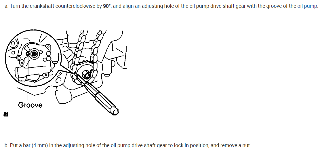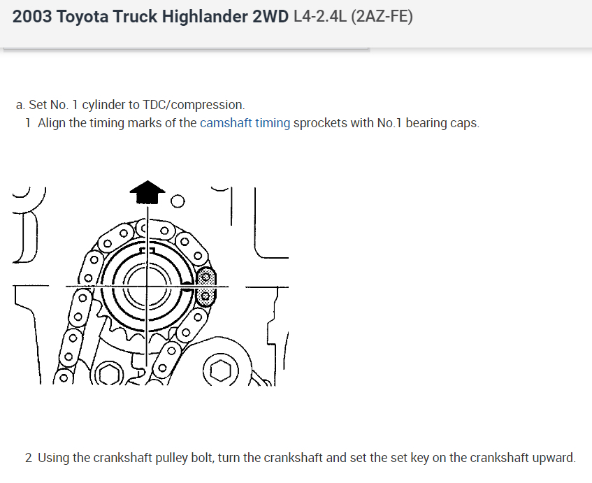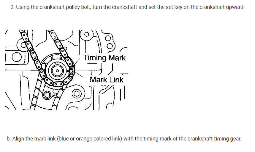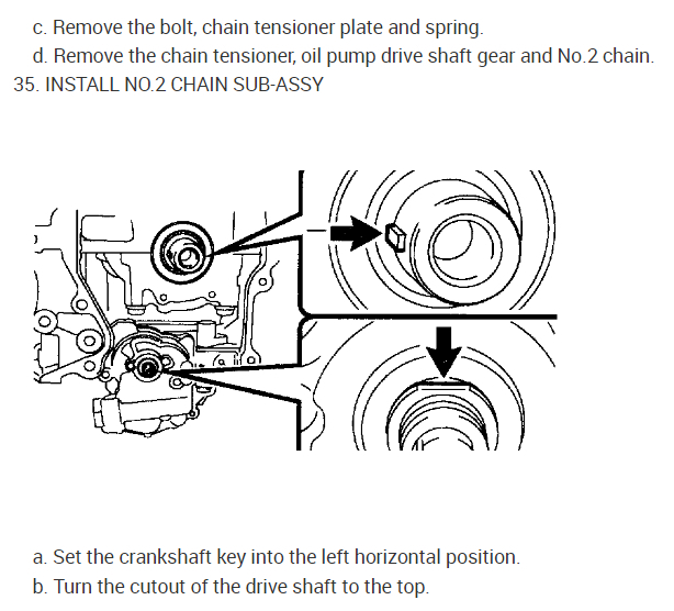 Here are the timing chain marks for the camshafts and oil pump. I would remove the valve cover to make sure the camshaft lobes are away from the valves showing you the engine camshafts are on TDC in the correct phase. Check out the images (below). Let us know if you need anything else.