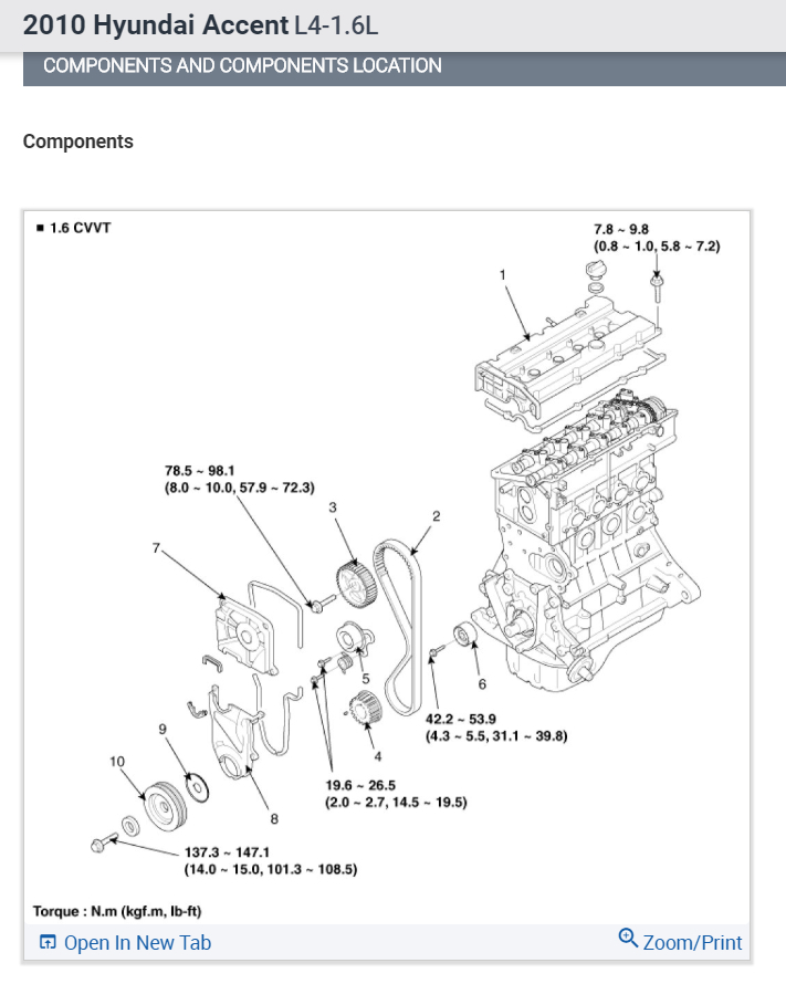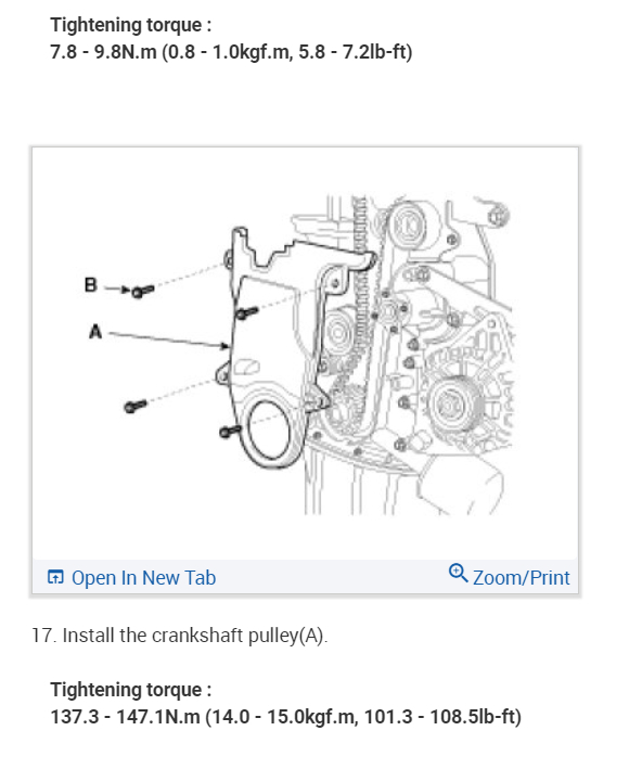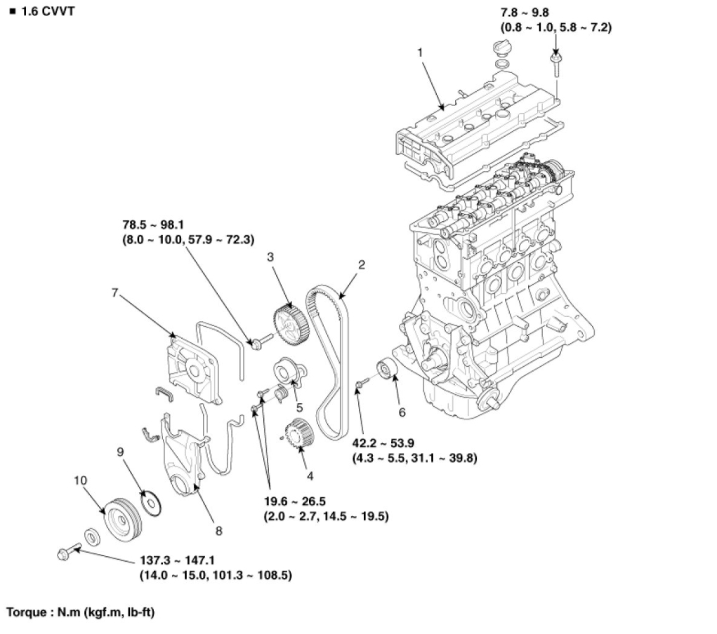 Without CVVT(1.4L/1.6L): 20±3.5 kgf
