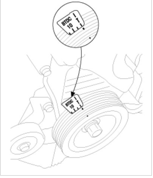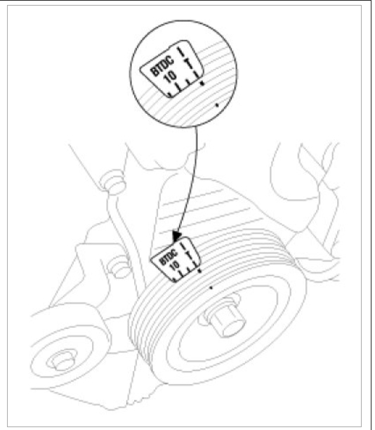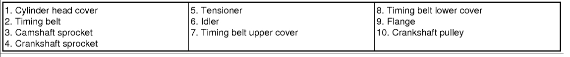 NOTE: If the timing belt reused, make an arrow indicating the turning direction to make sure that the belt is reinstalled in the same direction as before.
