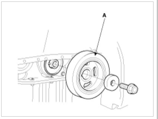 Remove the crankshaft pulley bolt and crankshaft pulley(A).