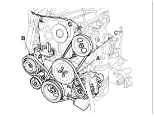 Install the power steering pump drive belt(C). .