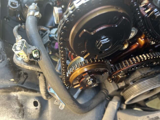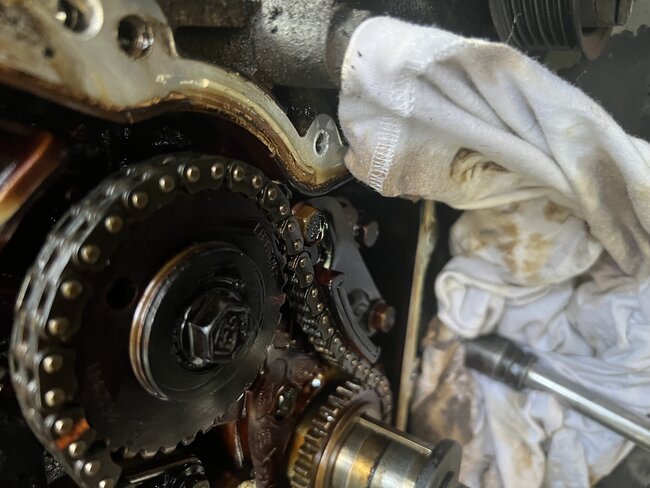 The flats on the camshafts do not line up together. On one side the flat is up, and the crank sprocket marks are lined up. The other side is off set from top. My question is, at that point, can I remove the chain and turn that one off set camshaft until the flat is at top? If not, what shall I do?