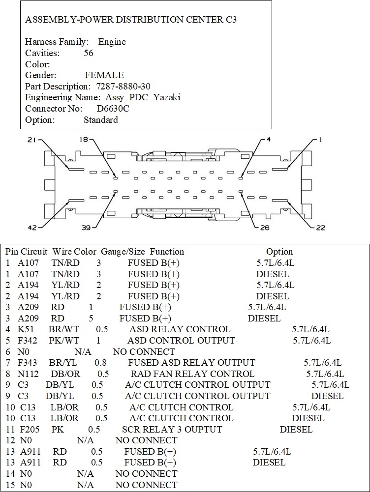 Here's all the connectors related to the TIPM. A few are two images for one connector because the list of wires was so long. You'll find the connector numbers on the top line of the descriptions.