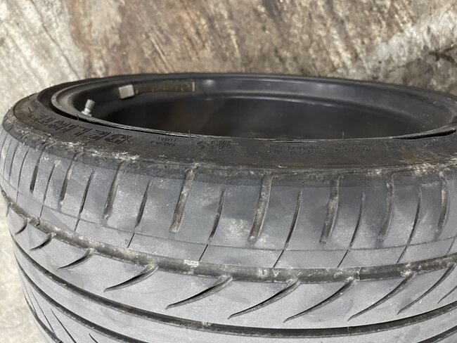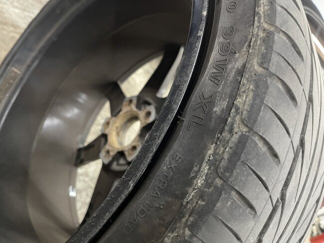 Does this look like a bad tire to you? It has aftermarket wheels and there is a harsh vibration, turned out ine if the wheels had a bad crack, replaced it and gotten better. Now I just balanced all 3 wheels and this last one on rear looks weird, do you see the inside of the tire?