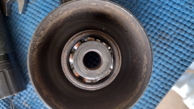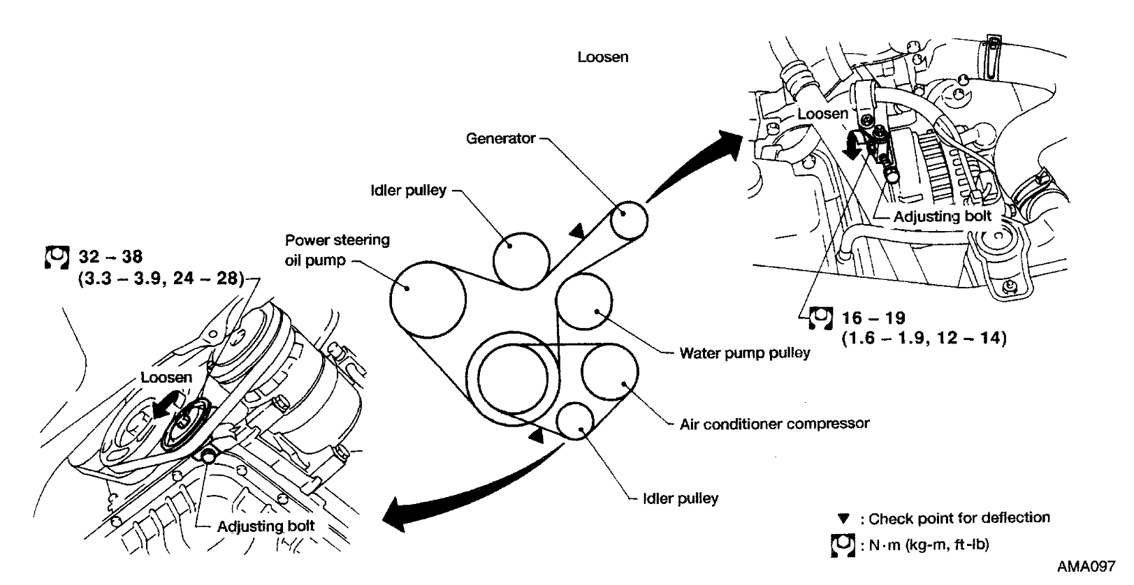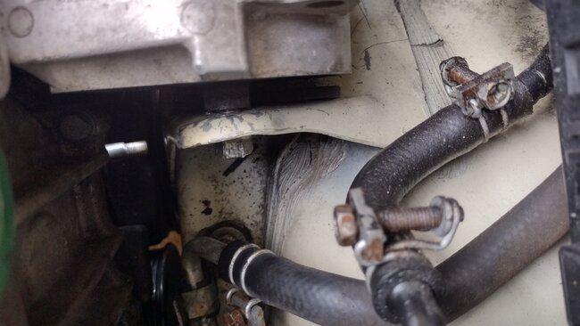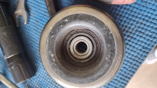 I think we're talking about a different pulley, it's not the pulley that you need the special tool to move the tensioner. It's a pulley at the top the back side of the belt rides on it. See attached pulley and also the bolt that. Holds the pulley on. The pulley rides very close to the fender well the bolt design is a real stumper. You will see the bolt sticks out of the block. It is not removable. The pulley slips over the bolt and is held on by a 14 mm nut. The nut was missing. You cannot see it very well because the top motor mounts is in the way. I shined a flashlight on the bolt to brighten up the photo. I hope you can make it out. I sent two pics of the pulley. The center part that the fastener goes through. It froze up so it could not turn. Please discard the last two photos. I could not delete them. Thanks. JC
