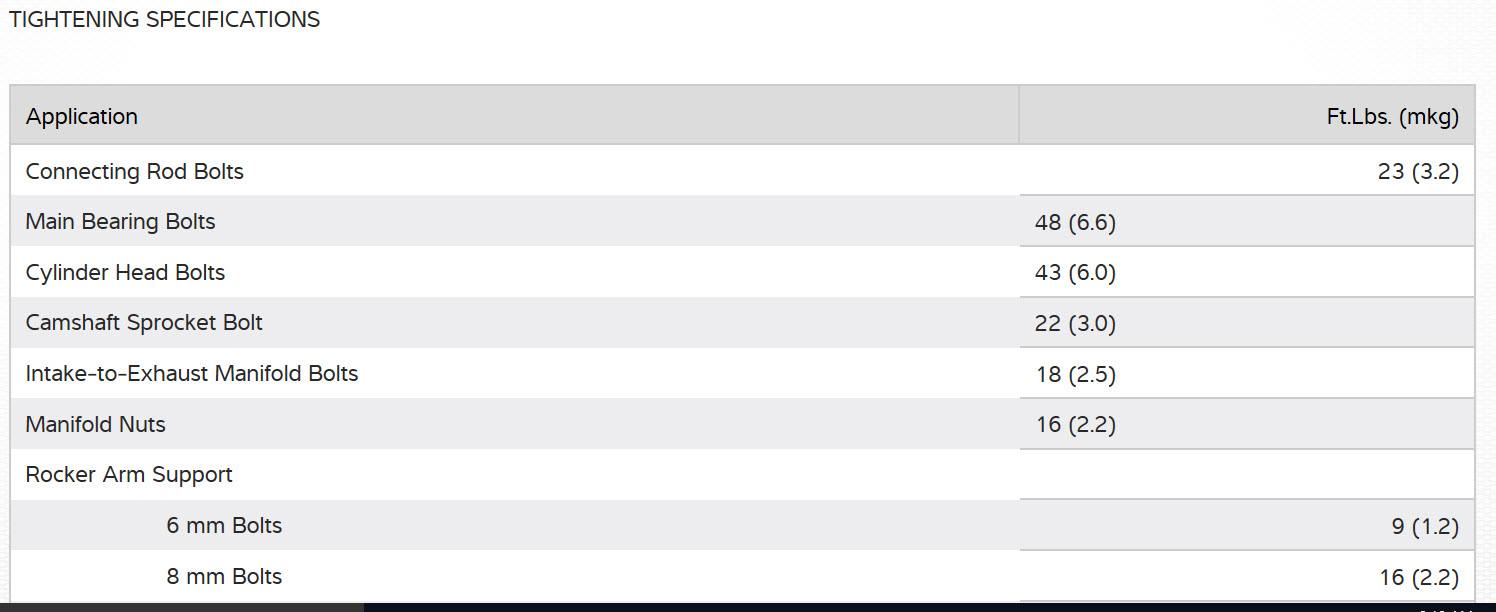 EB2 engine, I am planning a full rebuild, so what are the correct torque ratings for the head, crank shaft and rods?