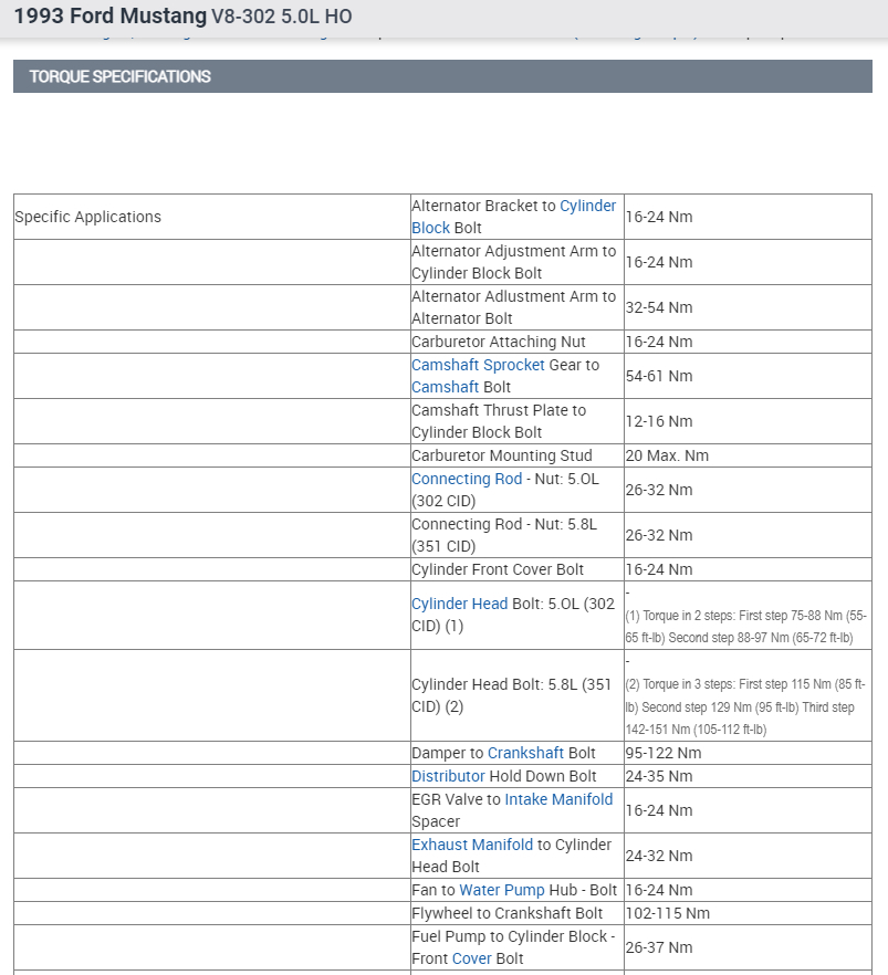 Hello, my name is Jr. I am currently building my 302-engine going mostly stock, trick and flow pistons, b303 cam, Edlebrock lower and upper manifold. I was wondering if you guys have a book or a website with a complete torque specs to tight down all my bolts to specs.