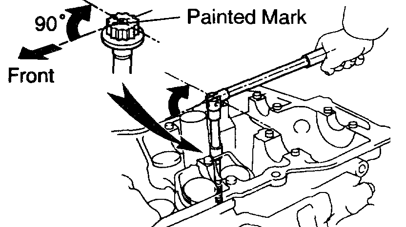 e) Retighten the cylinder head bolts by 90° in the numerical order shown.