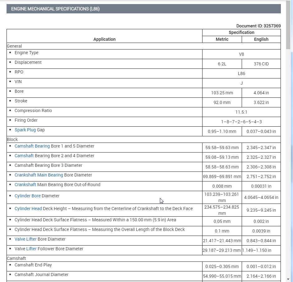 Hello, I have the truck listed above with a collapsed lifter. I have all the parts however, i do not have any torque specs for the L86 engine. I saw on your website torque specs however it didn't specify if it is the L86 engine. Can you please help?