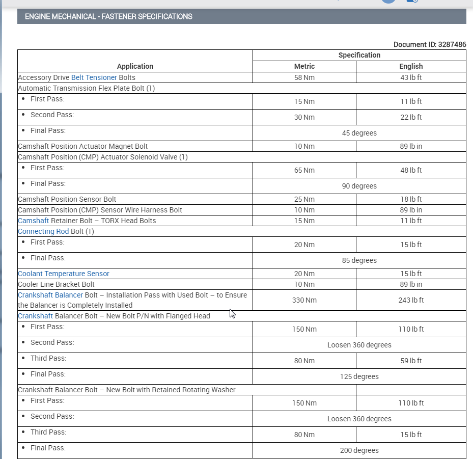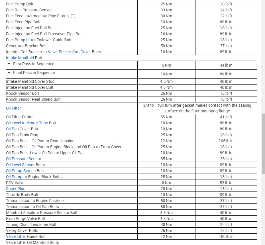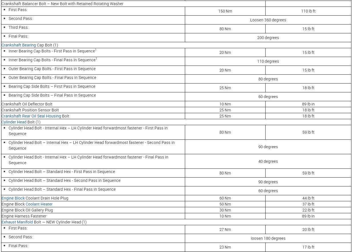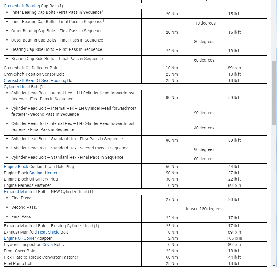 Thank you for the quick response. I am looking on how to torque the head bolts and valley oil manifold. I found the torque sequence just missing the torque specs.