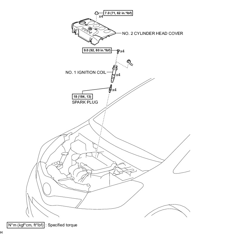 I need the procedure and torque specs for the spark plugs and ignition coil and cover the car listed above.