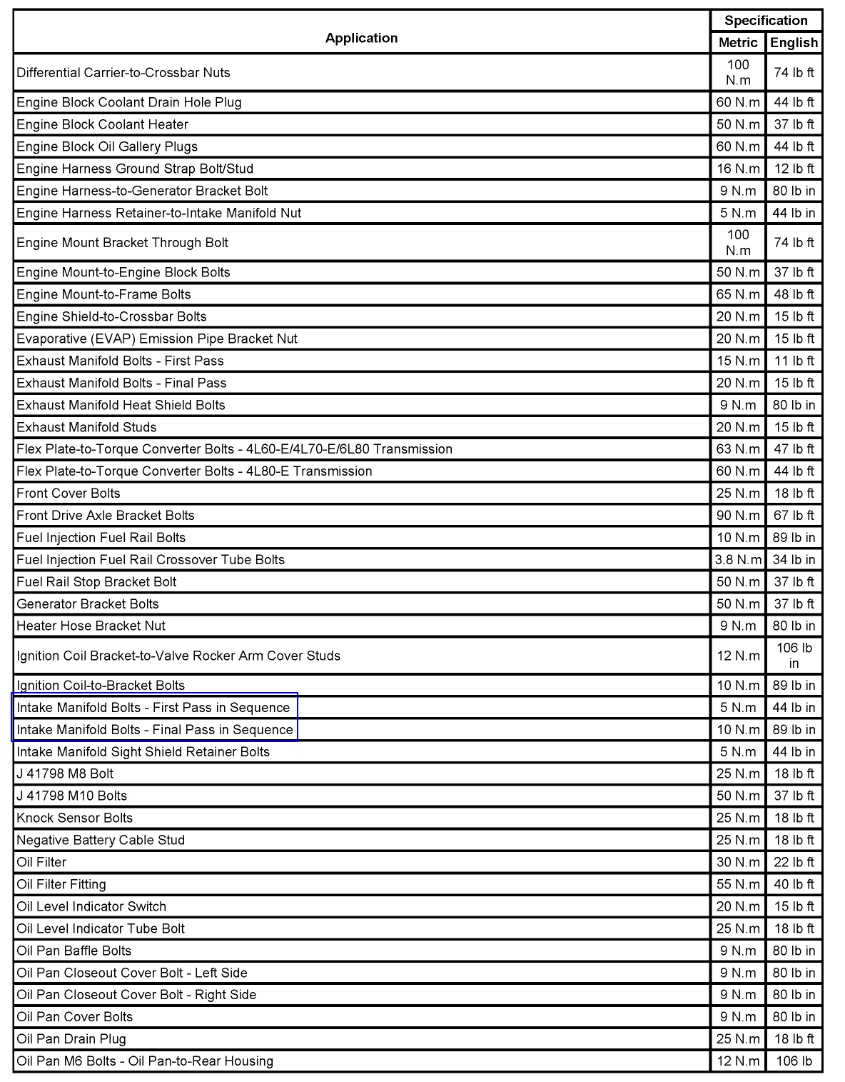 I have the truck listed above SLT model with the Vortec engine LH6. Could you tell me the torque specs for the heads, intake manifold and the exhaust manifold, rocker arms? I am putting on new gaskets.Thank you!
