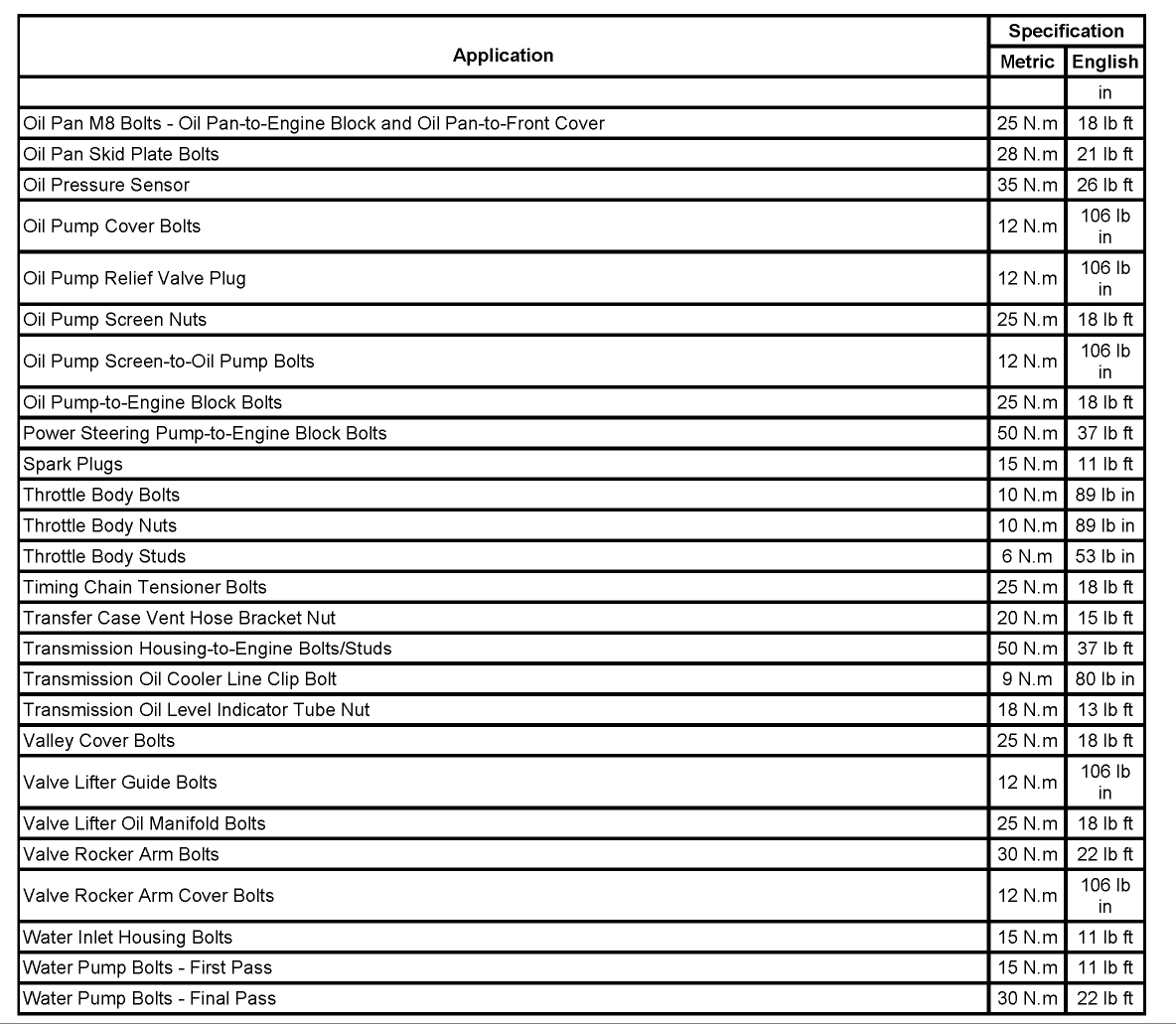 Torque specs