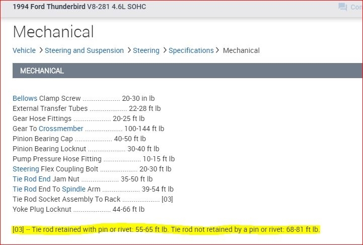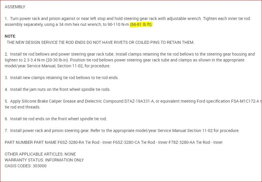 Hey, I'm replacing my Inner tie rods. I have a manual and everything that lists almost every torque spec except the inner tie rods. Please help me out.