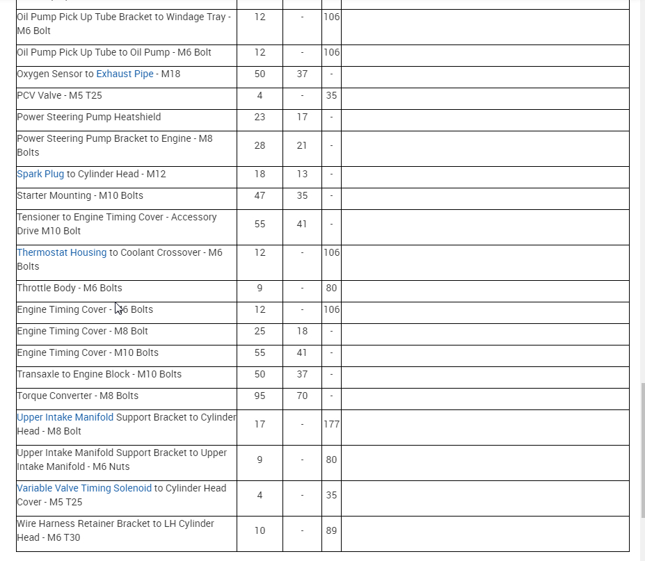 I attached all the engine specs but the Camshaft Bearing Caps are 10 Nm or 89 In Lbs.